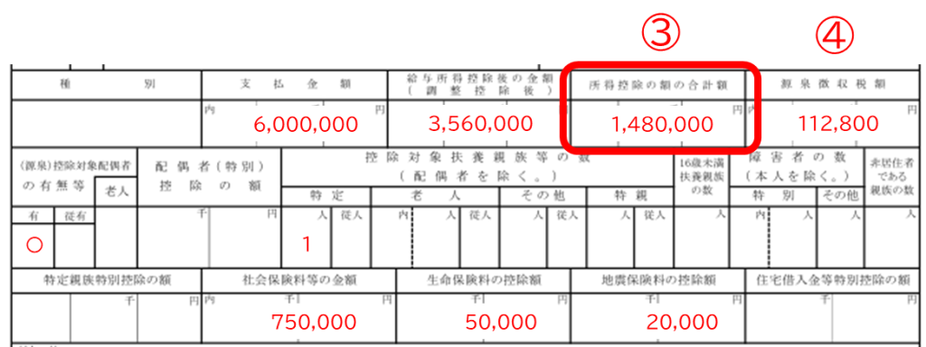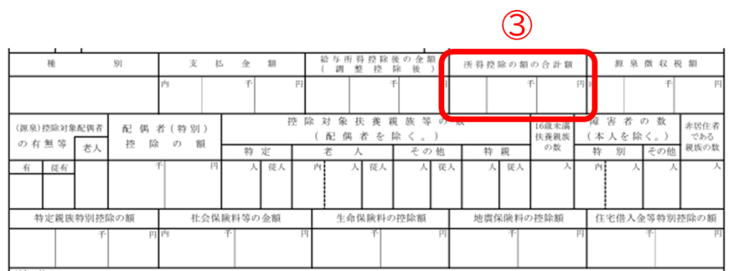 ③所得控除の額の合計額(=税金の計算から除外される金額)