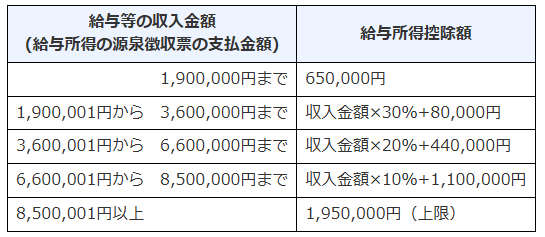 そこで会社員(給与所得者)の場合は、年収に応じた一定額の差し引きが認められています。